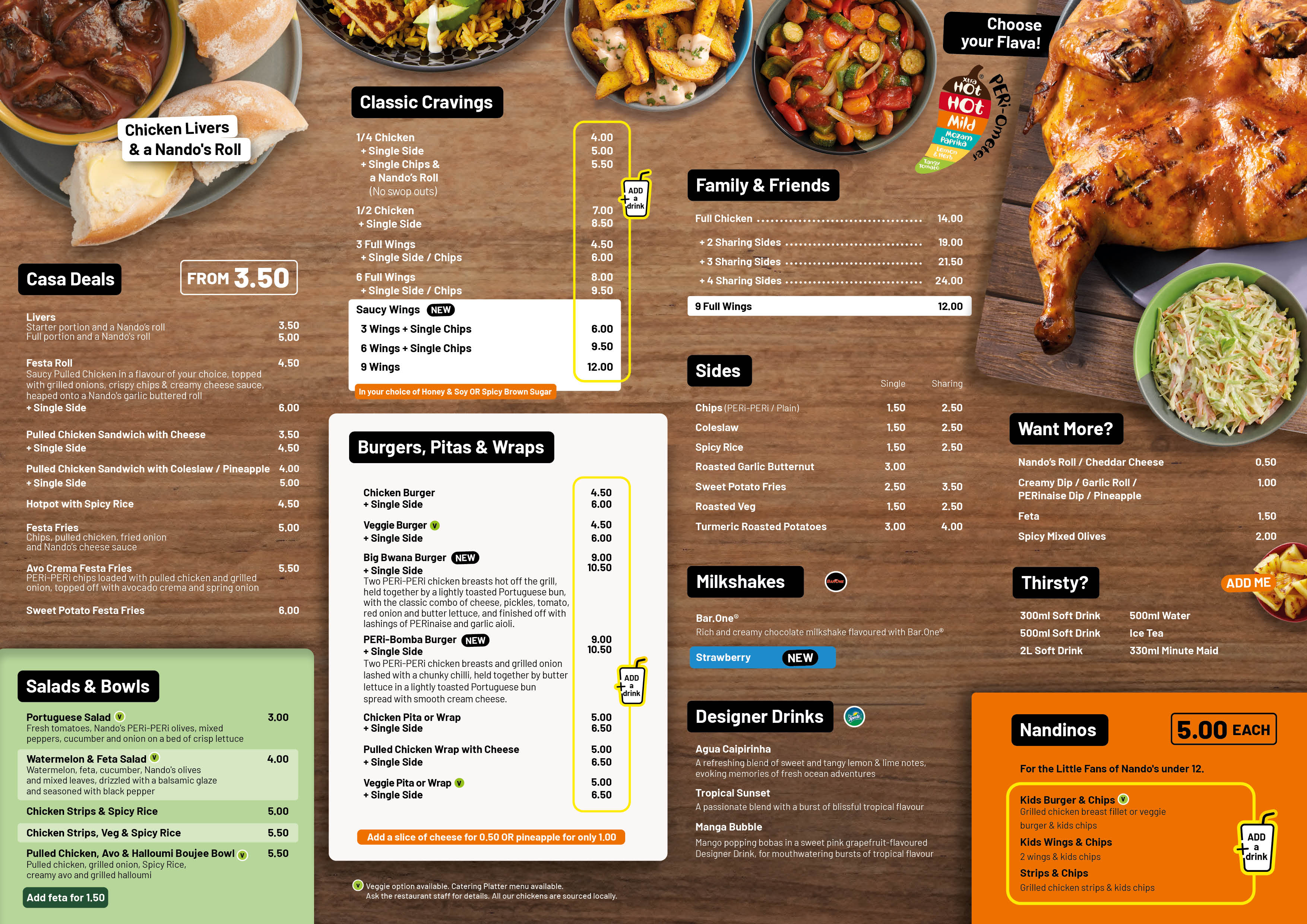 Fresh tomatoes, Nando's PERi-PERi olives, mixed peppers, cucumber and onion on a bed of crisp lettuce